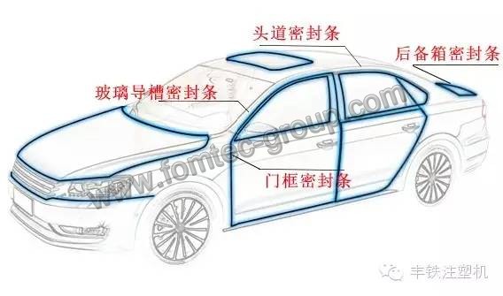 汽車密封條主要用于車門、車窗、車身、天窗、發(fā)動機箱和后備箱等部位,具有隔音、防塵、防滲水和減震等功能,它既起到保持和維護車內(nèi)小環(huán)境的作用,又對車內(nèi)乘員、機電裝置及附屬物品起保護作用。
