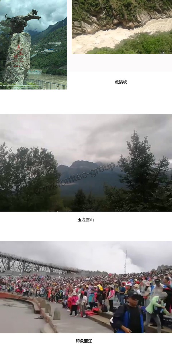 7月20日,蘇州豐鐵跟杭州豐鐵部分同事分別乘坐飛機跟高鐵來到了彩云之南。云南地形以山地、高原為主,坐在旅游車上,一路望去天邊的云朵跟遠處的山峰幾乎接壤,第一次感覺天空離我們?nèi)绱酥?。一路被周圍的景色驚艷,很快我們到達了首站—位于香格里拉市的虎跳峽,南有玉龍雪山,北有哈巴雪山,流淌著的是毛主席詩詞七律長征中“金沙水拍云崖暖”—氣勢磅礴的金沙江,洶涌的江水拍打著巨石,噴濺起乳白色的浪花,咆哮的水聲直沖天際。此刻站在岸邊的我們,不由得緬懷起革命先烈為了今天的幸福生活做出的偉大犧牲.