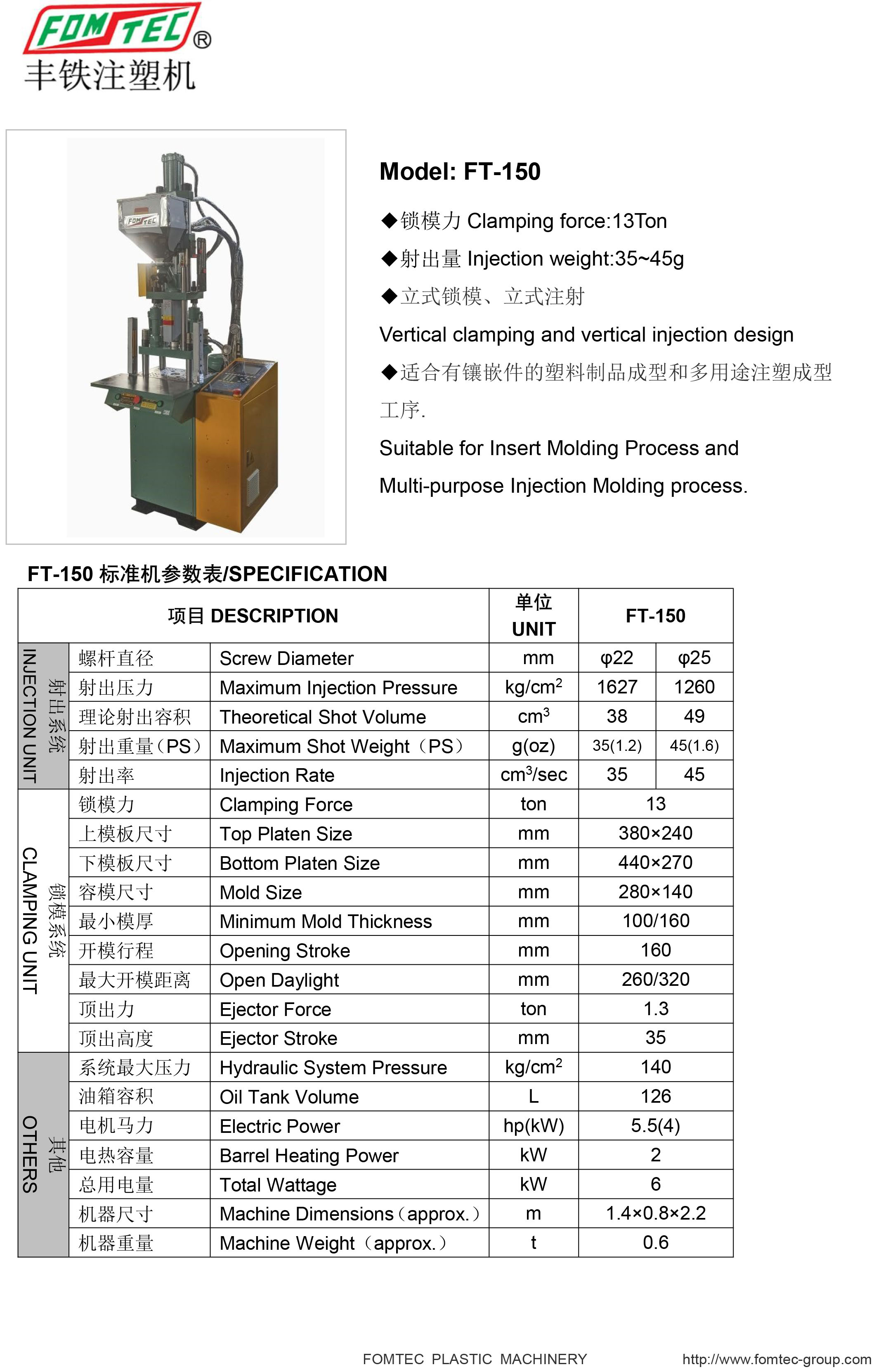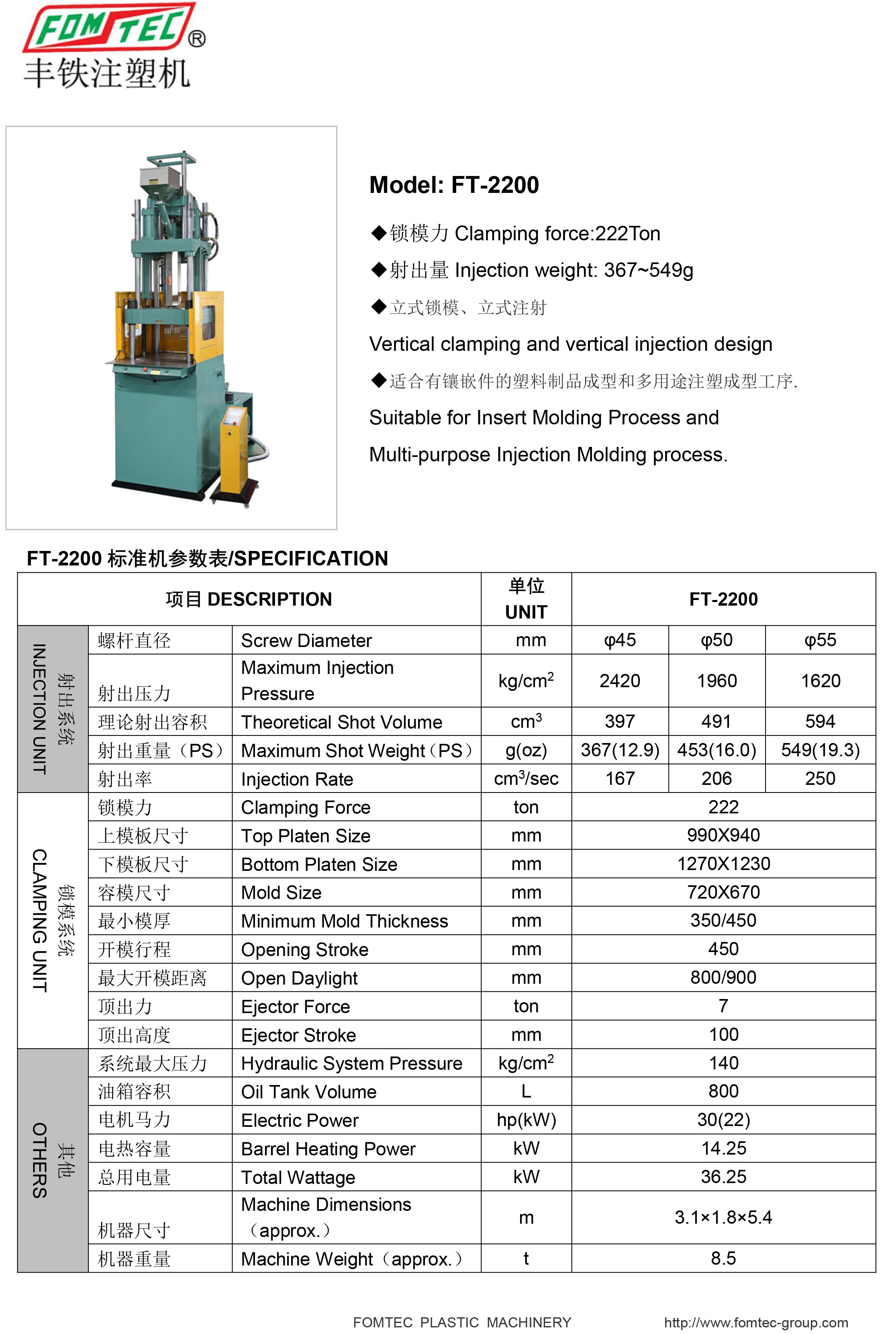 產(chǎn)品名稱:FT標準立式注塑機系列